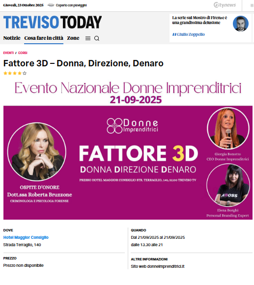 “Fattore 3D” si presenta dunque come un punto di incontro per riscrivere le regole, dove il denaro diventa strumento di libertà e il networking si trasforma in capitale umano e sociale.