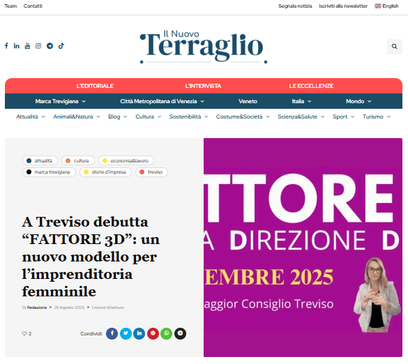 TREVISO – In Italia sono oltre 1,6 milioni le donne con partita IVA, e ogni giorno affrontano la sfida di conciliare lavoro, casa e ambizioni personali. Per offrire loro strumenti concreti di crescita e connessione, nasce “Fattore 3D – Donna, Direzione, Denaro”, il primo evento nazionale ideato da Donne Imprenditrici S.r.l.
